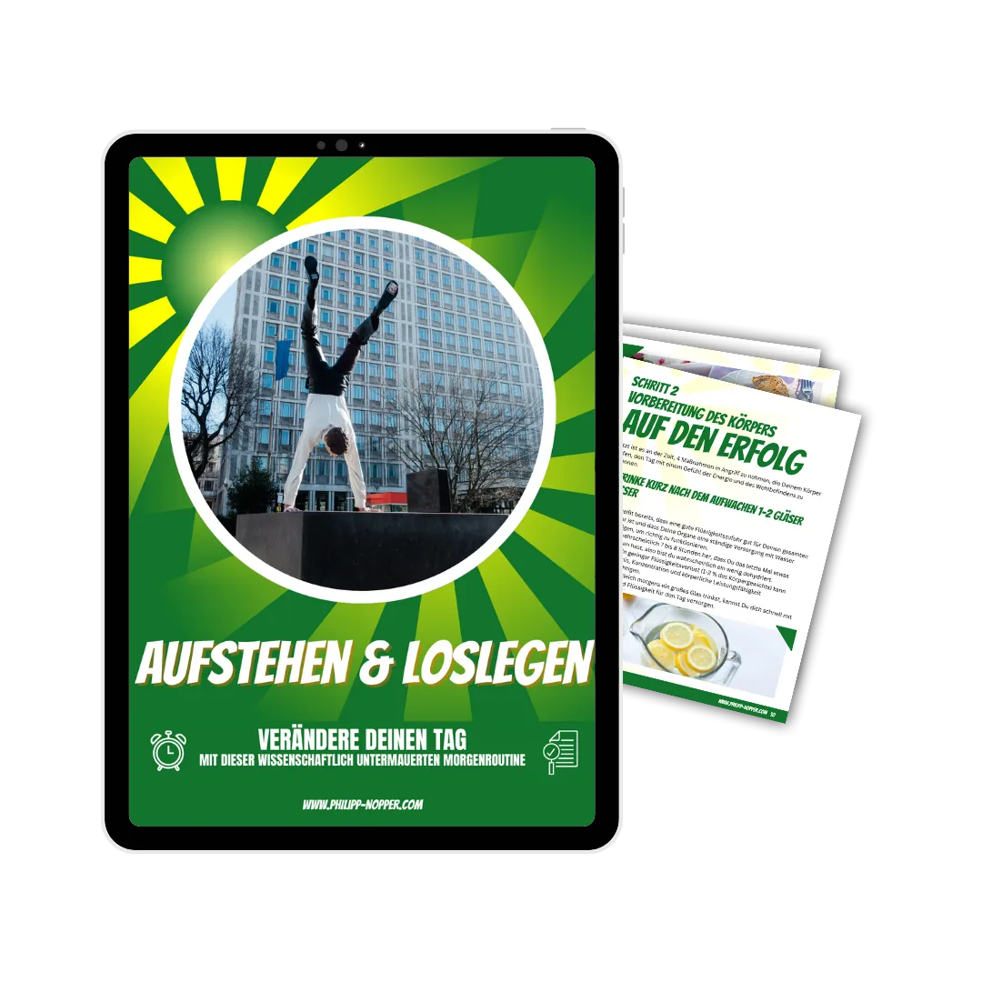 Dein Ebook - Es gibt Dir einen Rahmen für eine der praktischsten und ergebnisorientiertesten Maßnahmen, die Du morgens als Erstes ergreifen kannst, so dass alles andere im Laufe des Tages einfacher wird - alle Maßnahmen wissenschaftlich untermauert.
